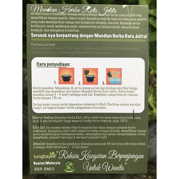 Tiada pantang larang yang berupa urutan, mandi herba ataupun calitan di dahi yang wajib dilaksanakan seusai bersalin.