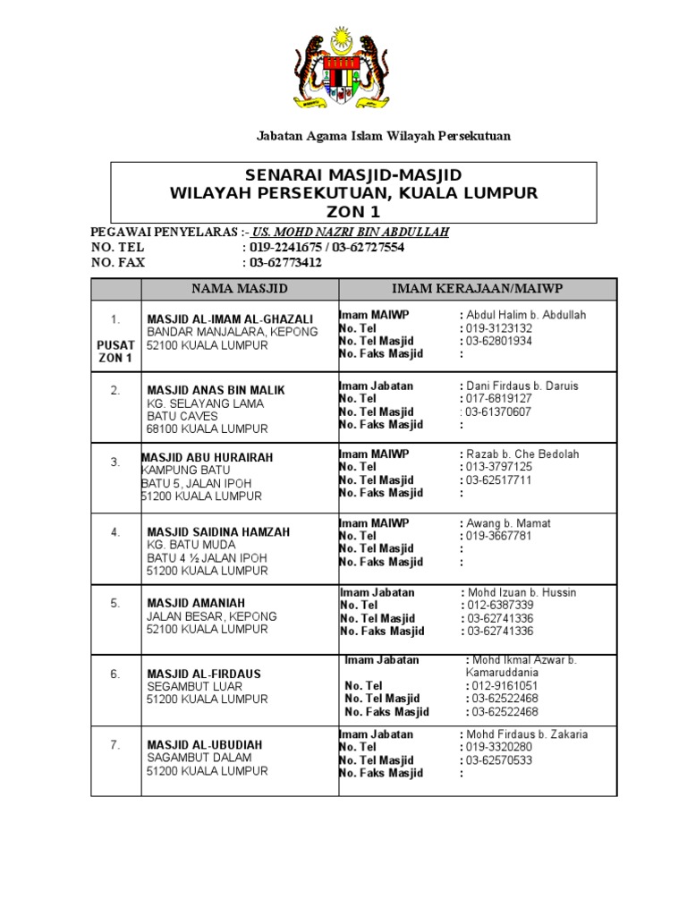 Senarai Jabatan Agama Islam Wilayah Persekutuan Jawi Facebook from lookaside.fbsbx.com Semasa penginapan anda di resort, anda dapat menikmati kemudahan spa, makan dan golf yang luar biasa. Masjid ubudiah ialah sebuah masjid di bukit chandan, kuala kangsar, perak yang dianggap salah satu masjid terindah di malaysia dan merupakan simbol kebanggaan dan kepercayaan untuk kaum muslim di perak. Sejumlah 83,084 pintu rumah di beberapa kawasan di sekitar hulu langat, kuala langat, kuala lumpur dan petaling jaya juga mengalami terputus bekalan air dan tekanan rendah sejak kebelakangan ini disebabkan pertambahan permintaan air yang mendadak ekoran dari cuaca panas. Directory of muslim businesses and mosques in the united kingdom. Ia terletak di persimpangan sungai klang dan sungai gombak dan boleh diakses melalui jalan tun perak. Masjid negara terletak di atas sekeping tanah berkeluasan 13 ekar di pusat bandaraya kuala lumpur. Selepas pembukaan rasminya pada tahun 1909, masjid ini telah menjadi masjid utama di kl sehinggalah terbinanya masjid negara pada tahun 1965. Apakah waktu solat hari ini kuala lumpur?