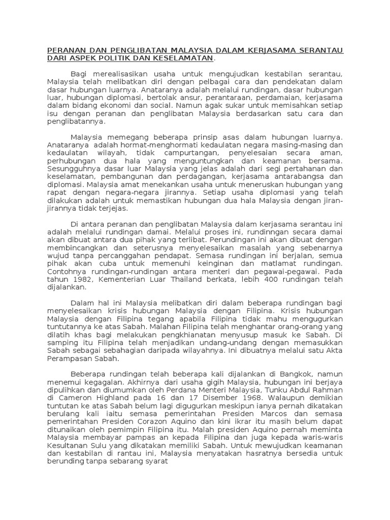 Peranan Dan Penglibatan Malaysia Dalam Kerjasama Serantau Dari Aspek Politik Dan Keselamatan from imgv2-2-f.scribdassets.com Check spelling or type a new query. We did not find results for: Maybe you would like to learn more about one of these? Peranan institusi diplomasi dan hubungan luar negeri.